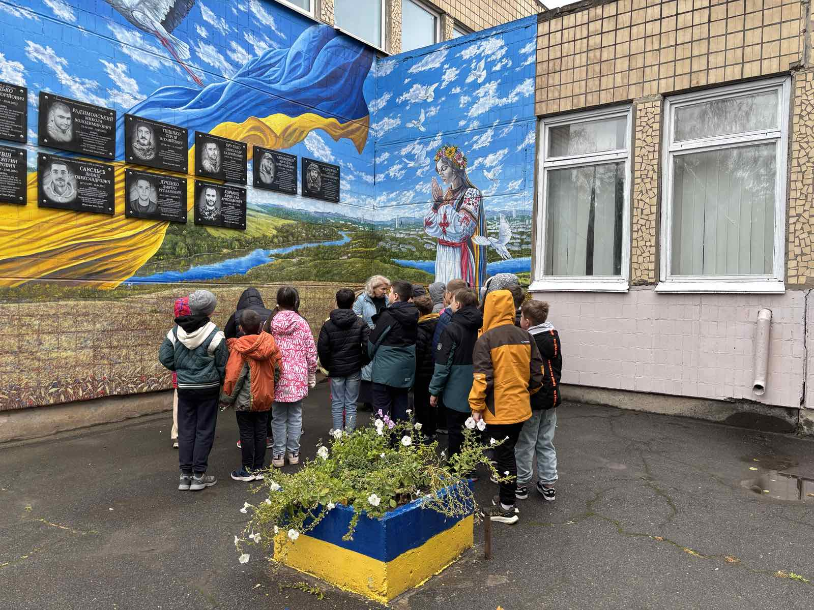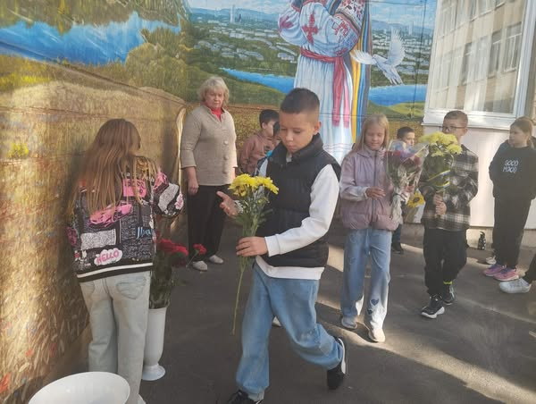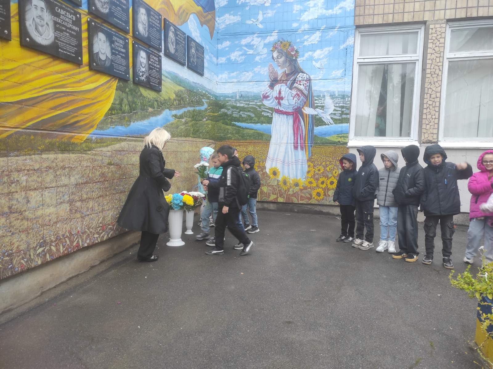 покладання квітів біля меморіальних дошок загиблим учням. Хвилиною мовчання згадали їхню відвагу та подвиг.